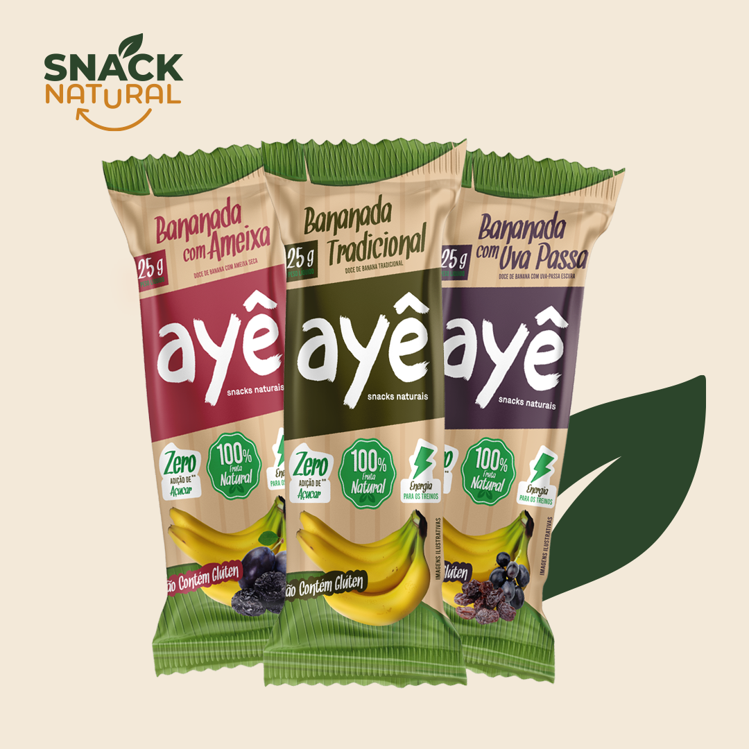 Por que escolher um único sabor se você pode ter todos? A Caixa Mista Ayê Snack Natural foi criada para oferecer a experiência completa da nossa linha de bananadas. Composta por 30 pacotes, ela é a solução ideal para quem busca praticidade e quer variar os benefícios e sabores ao longo do mês.